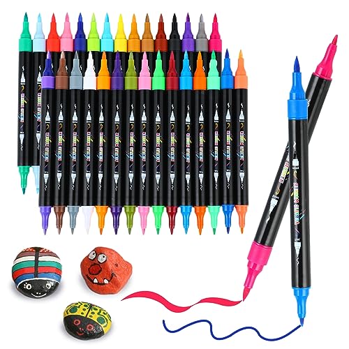 30 Colours Acrylic Paint Pens for Rock Painting Fabric Glass Stone Ceramic Wood Metal, Dual Tip Acrylic Markers Set for Easter Egg Pumpkins Christmas, Arts and Crafts for Adults