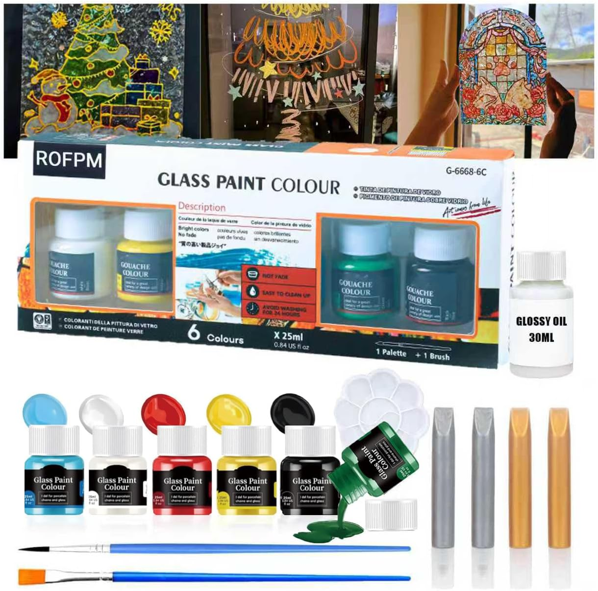 Glass Painting Kit with Stained Glass Effect, Includes Gold, Silver Outline Pens