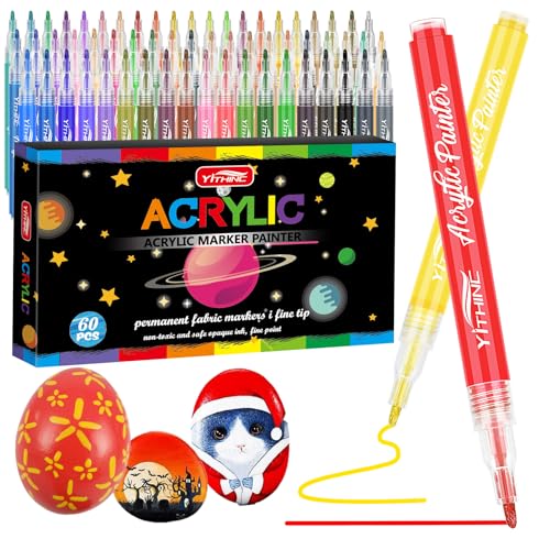 YITHINC Acrylic Paint Pens, Art Set for Rock Painting Stone Ceramic Metal Paper Glass Canvas Fabric Wood Porcelain Pebble, pumpkin painting kit, Acrylic Markers for Adults(60 Colors)