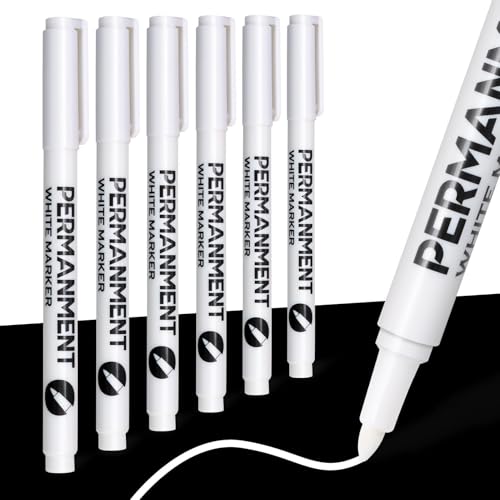 newatty White Permanent Markers Bullet Tip Marker Paint Pen, 6 Pack Acrylic Fabric Pen 1mm White Marker Pens Set Waterproof Quick Dry for Doodling Rock Metal Glass Wood Tyre Painting Plastic