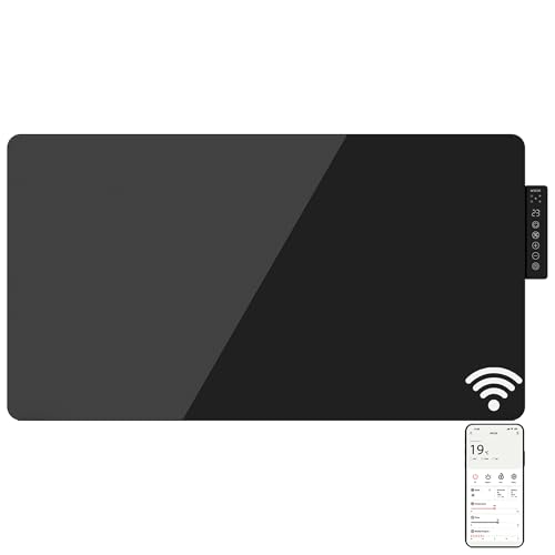 Mylek Radiator Glass Panel Heater Black, Wifi Enabled Smart APP 2000W, Open Window Detection, Wall Mounted Or Free Standing, Low Energy Heaters, Timer, Lot 20, (Black 2KW)