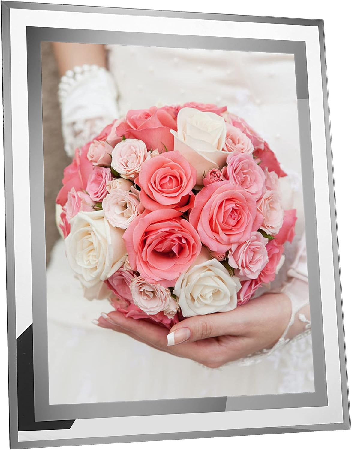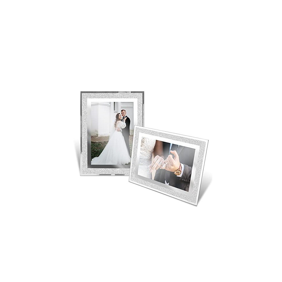 LOKCASA 8x10 Glass Photo Picture Frames,Sparkly Silver Border Frames for Wedding Family etc. Photos