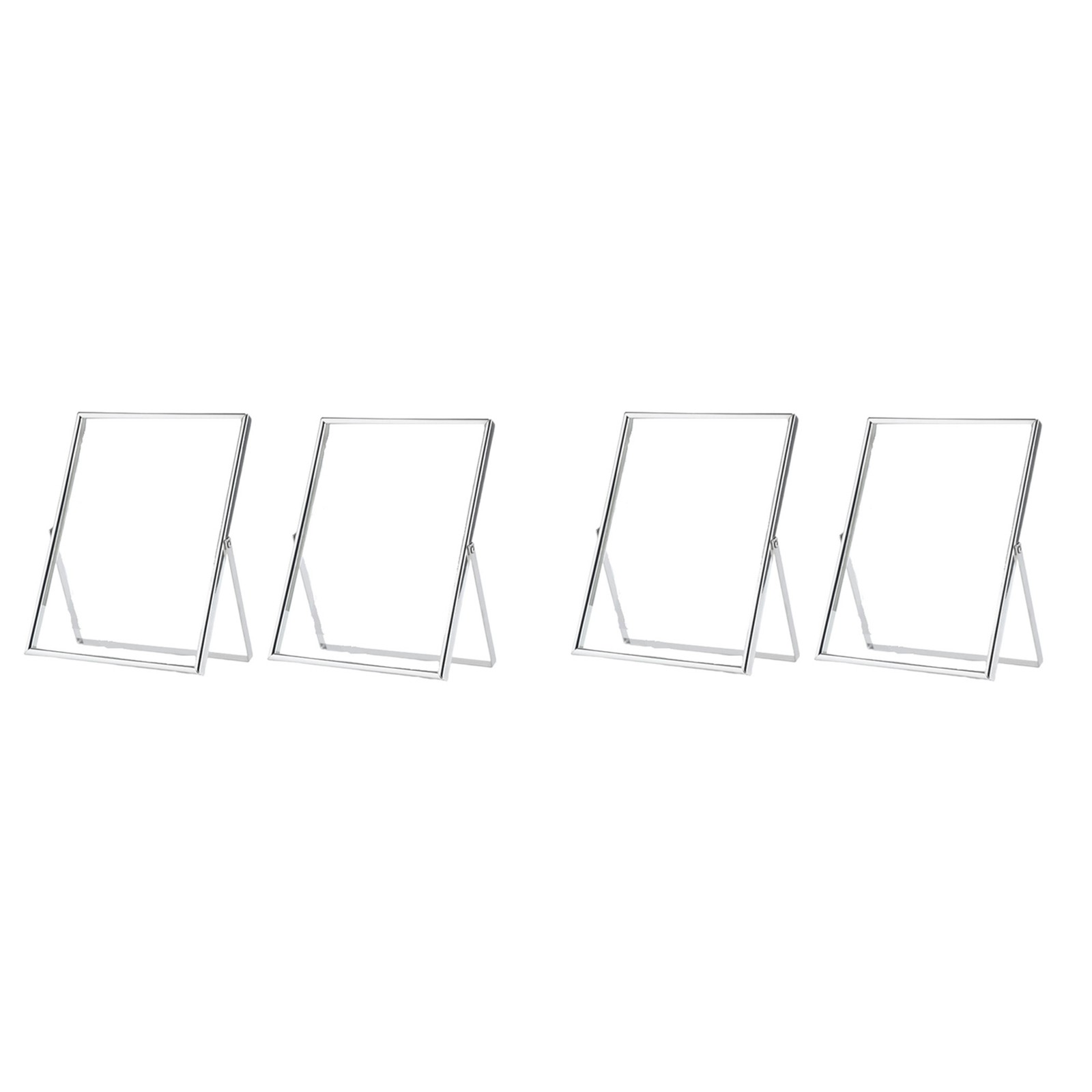 Frewurwer Silver Floating Picture Frame Set of 4, Gift Metal Glass Photo Frames, for Tabletop Display Vertically