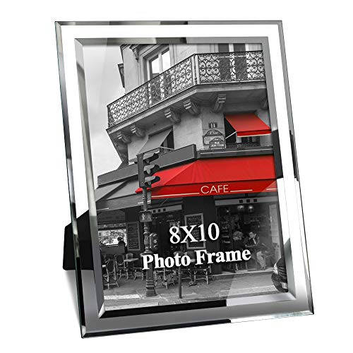 LOKCASA 8x10 Glass Photo Picture Frames,Sparkly Silver Border Frames for Wedding Family etc. Photos