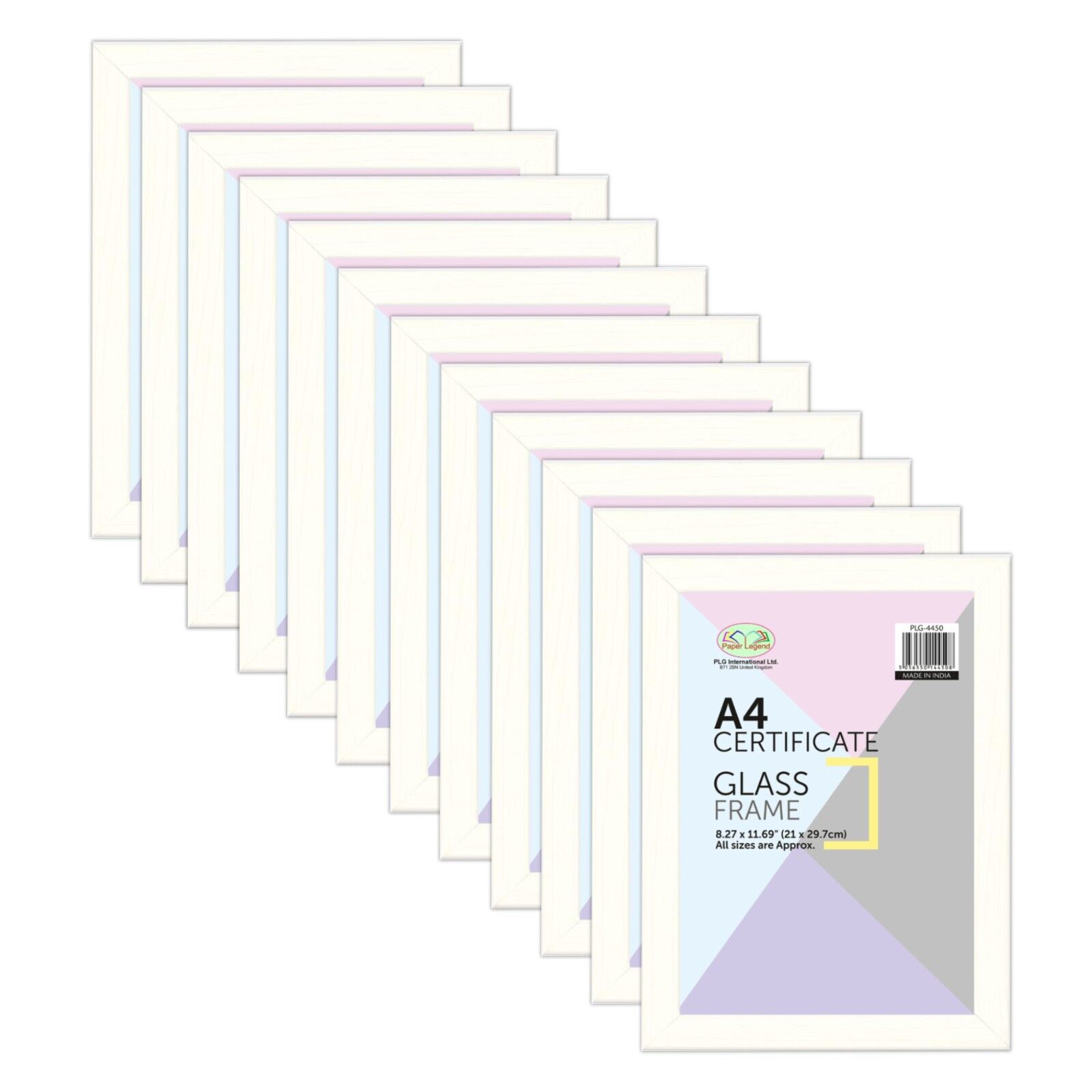 A4 Photo Frame Pack of 12, Certificate White Glass Picture Frames Wall Mount