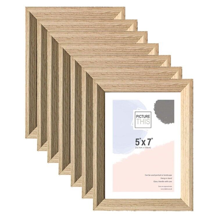 [Set of 7] Brown Photo Frame 5"x7"Wooden Glass Picture Frames Wall Hang Tabletop