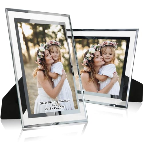 DMSELL 2 Pack Glass Photo Frame 8x6, Glass Picture Frames 8x6 for Wedding Photos,Family Photos and Home Decoration