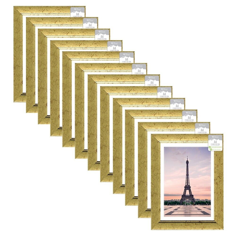 12 x A4 Classic Wooden Gold Frame Glass Certificate Photo Picture Frames Decor