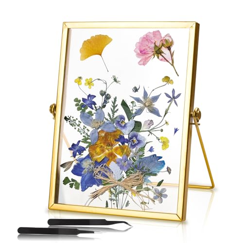 Unvtap Gold Photo Frame 8x6 Inch Glass Frames for Pressed Flowers Double Sided Transparent Pressed Flower Frame Countertop Display Glass Picture Frames Handmade Plant Specimen Artwork Picture Frame