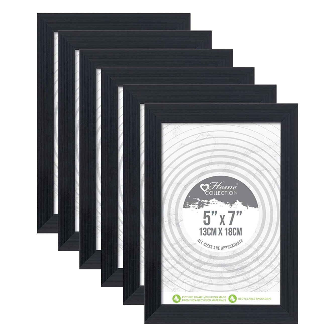 (Set of 6) Black Photo Frames 5” x 7" Glass Picture Frames Wood Effect Display
