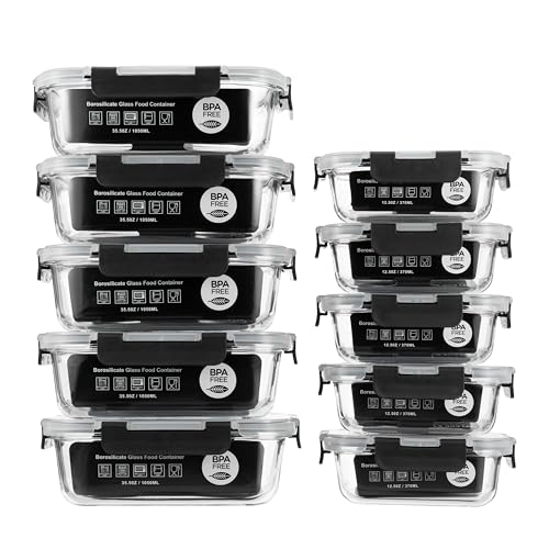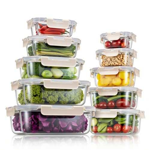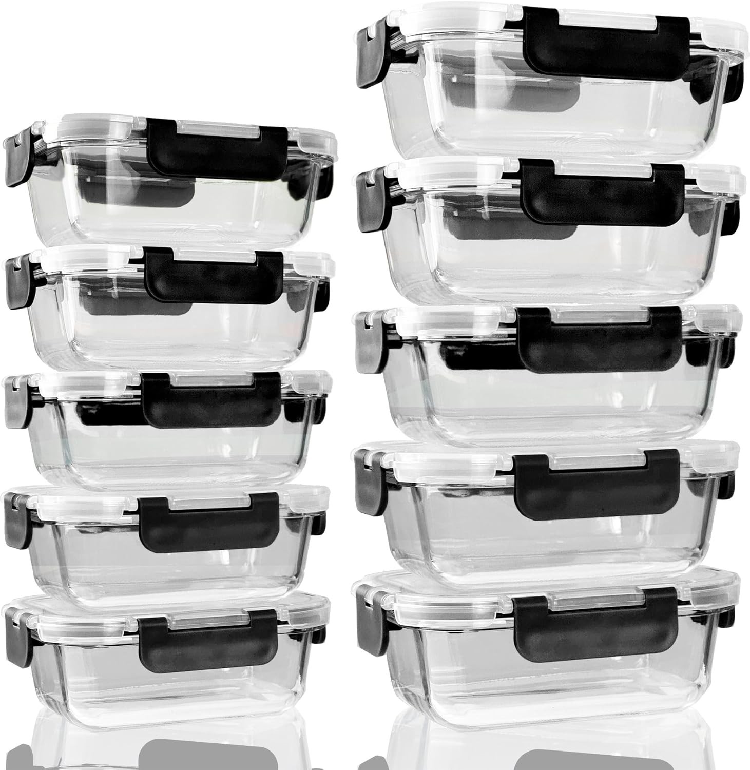 [10 Pack] Glass Food Storage Containers with Airtight Lids, Meal Prep Containers, Storage Container Set with Bpa-free Lid for Food, Lunch Bento Box, Microwave, Oven, Freezer and Dishwasher