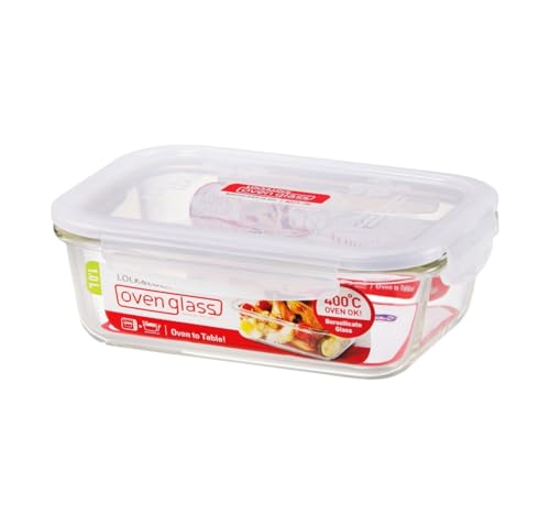 LocknLock Eco Ovenglass Glass Food Storage Containers with Lids 1Ltr - Airtight, Leakproof Rectangular Glass Food Container with Recycled Plastic Lid, Oven Safe, Dishwasher Safe, 20 x 15 x 7.5cm