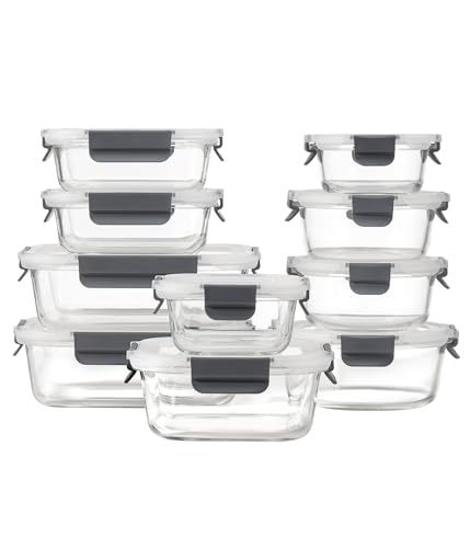 MEETOZ 10 Pack Glass Meal Prep Containers, Airtight Food Containers, Stackable Glass Food Storage Containers Set with Lids, BPA-Free, for Microwave, Oven, Freezer and Dishwasher (Grey)