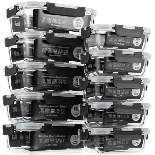 MEETOZ 10 Pack Glass Meal Prep Containers, Airtight Glass Food Containers, Stackable Glass Food Storage Containers Set with Lids,BPA-Free, for Microwave, Oven, Freezer and Dishwasher