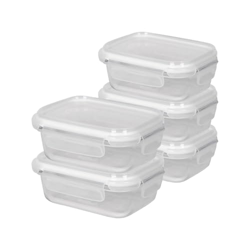 Harbour Housewares 370ml Glass Food Storage Containers with Lids - Clear/White - 5x Small Reusable Airtight Meal Prep Lunch Box Takeaway Cereal Pantry Tubs Set | Safe for Freezer and Microwave