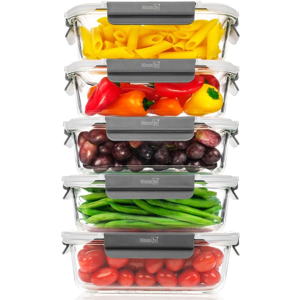 Glass Food Storage Containers with Lids - 5 Airtight Food Storage Containers
