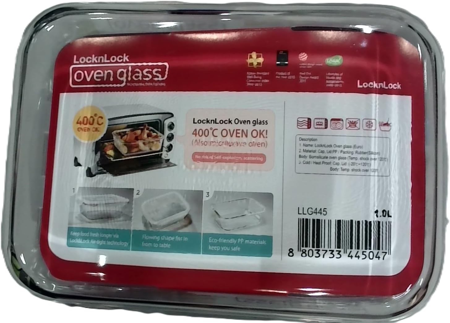 LocknLock Eco Ovenglass Glass Food Storage Containers with Lids 1Ltr - Airtight