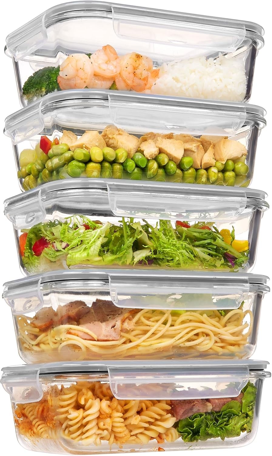 [5-Pack] Food Prep & Storage Glass Containers with Lids - Airtight Glass Meal P