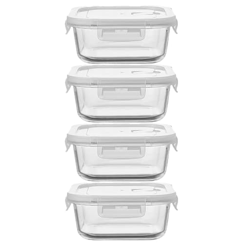 Bstask 4pc Glass Meal Prep Containers Set, Airtight Glass Storage Containers with Snap Lock Lids, BPA-free, for Meal Prep & Baking