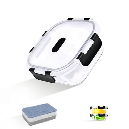 Hcrvvi Glass Containers With Lids Set, BPA - Free, Food Storage, Meal Prep Containers, Glass Storage Containers With Lids 4 Pieces 370ml, 640ml, 1040ml, 1520ml Each, and 1 Cleaning Sponges