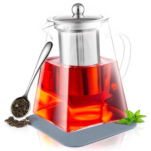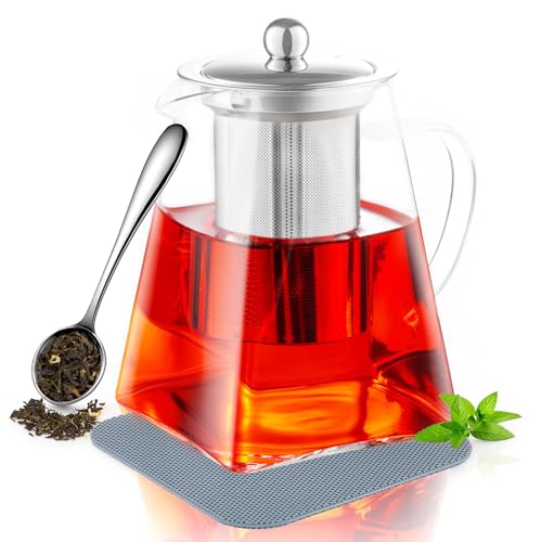 Glass Teapot with Infuser and Lid - 40Oz Borosilicate Glass Teapot with Heat-Res