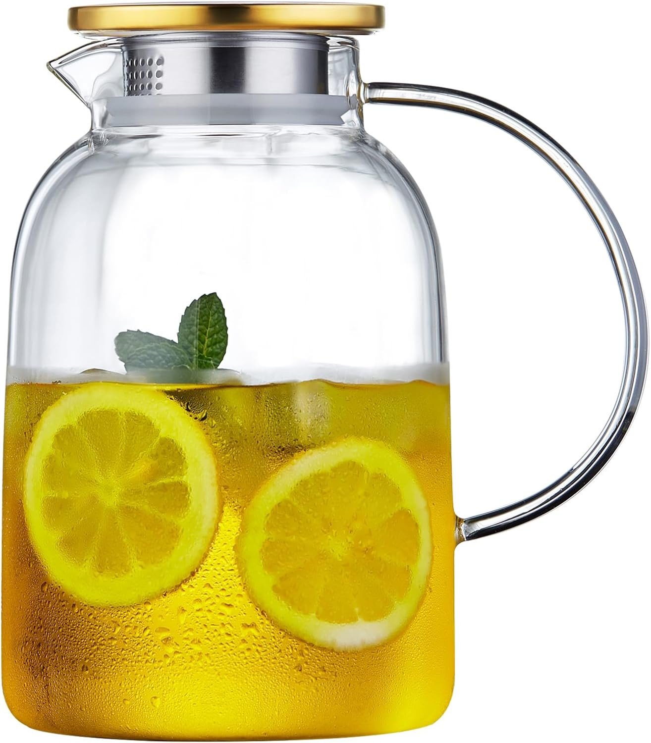TAMUME 1.5 Liter Water Pitcher Fruit Water Jug with Stainless Steel Lid and Glass Teapot with Infuser
