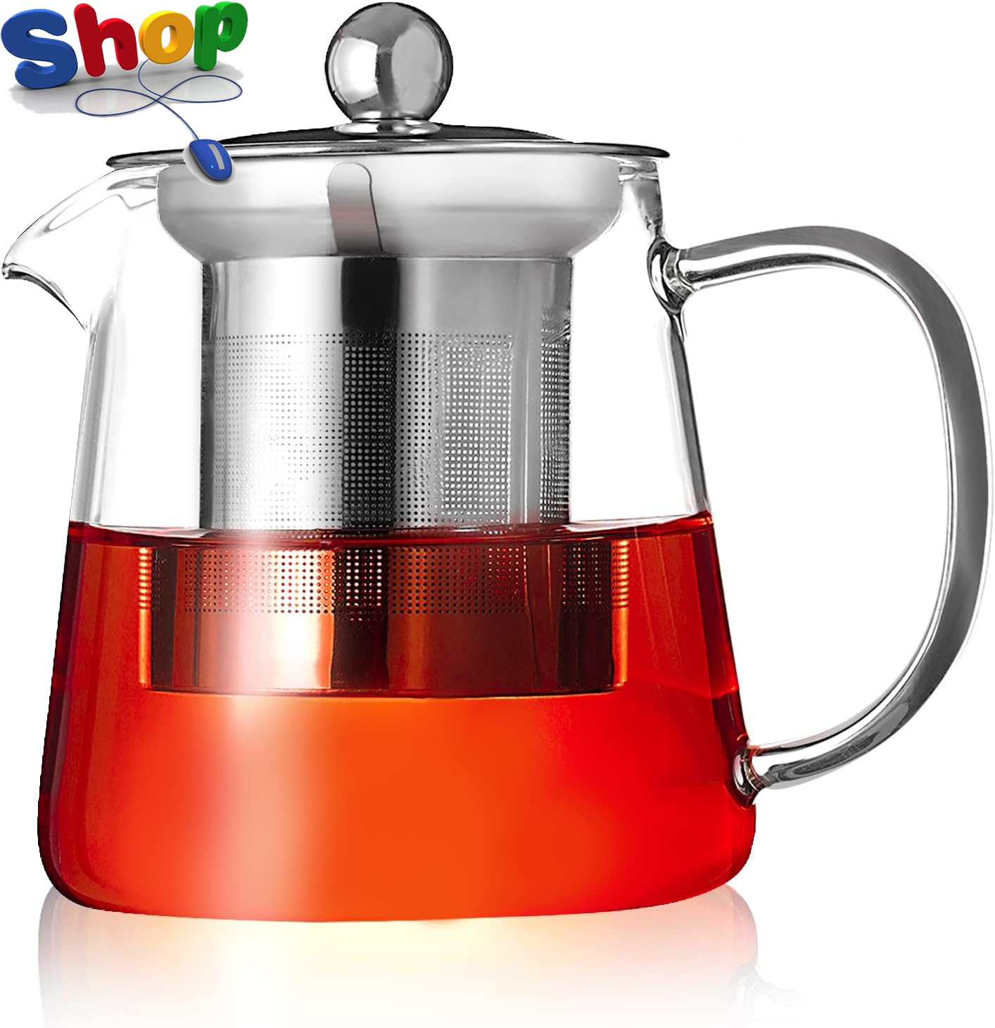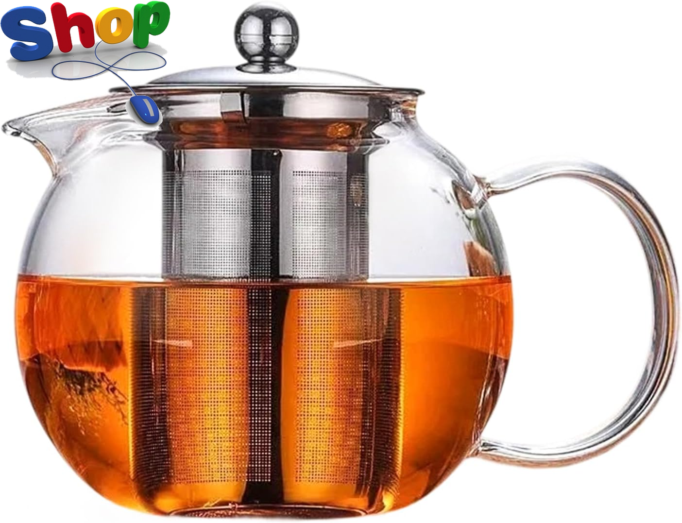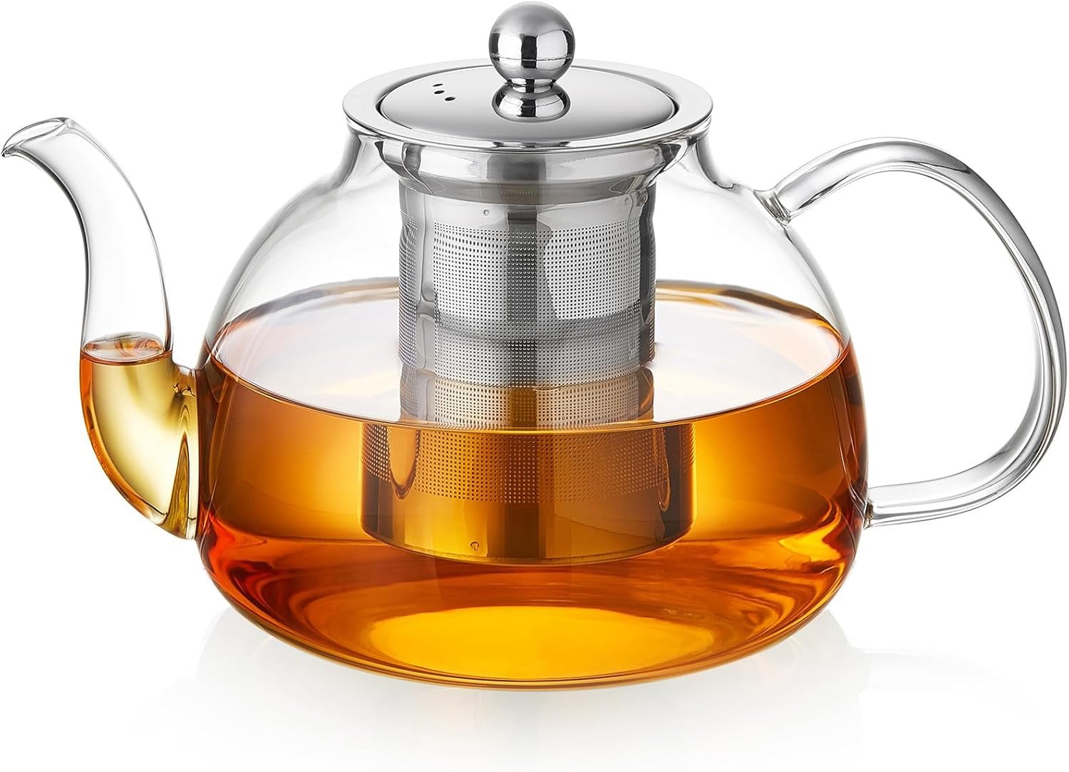 PluieSoleil Clear Glass Teapot with Infuser Round Shape Infuser Tea Pot Heat