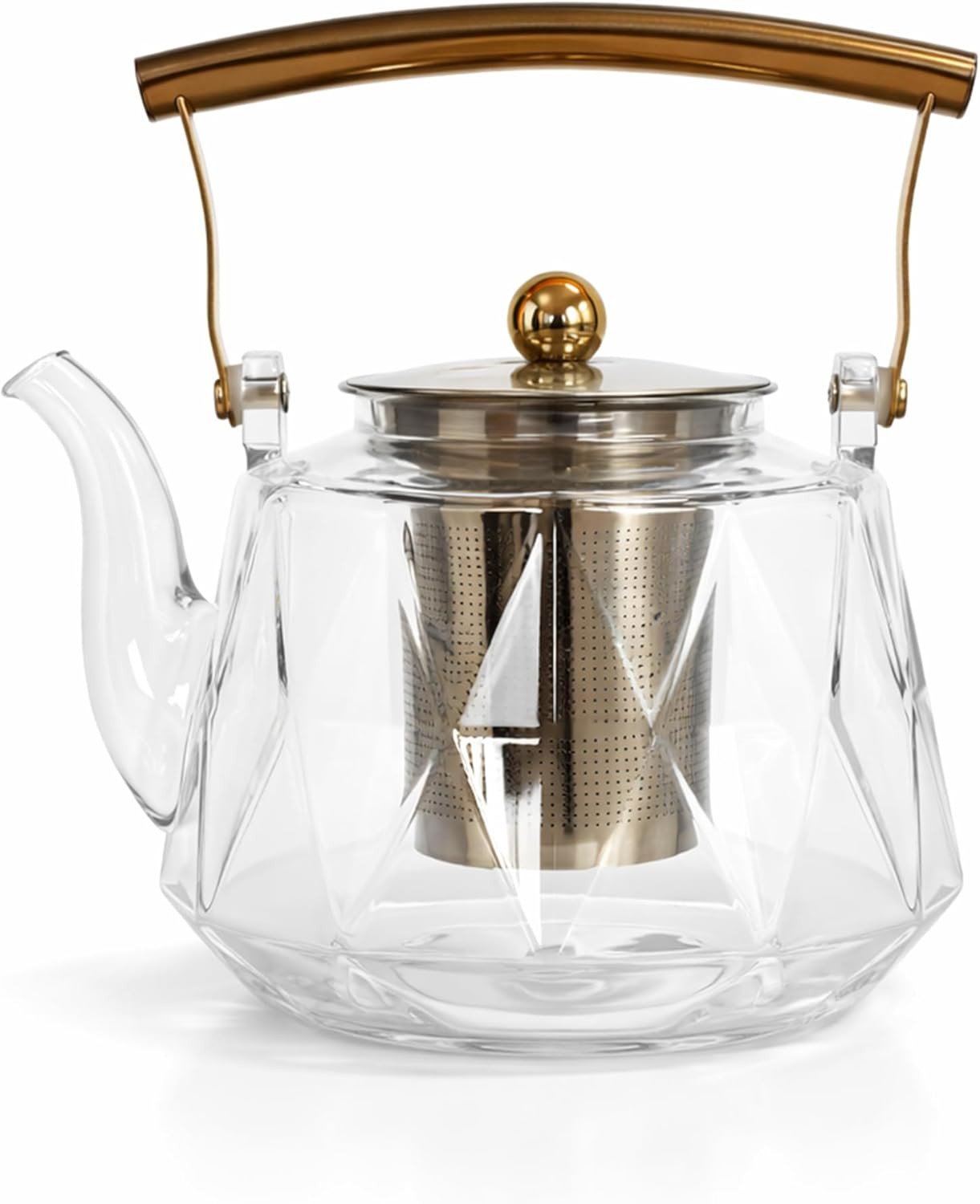 Charbrew 1000Ml Clear Glass Teapot with Infuser - Borosilicate Glass, Gold Ball