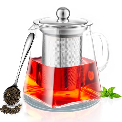 PluieSoleil Glass Teapot with Infuser, Tea Pot Strainer for Loose Tea Leaf, Large Teapot Set, Removable Mesh Filter