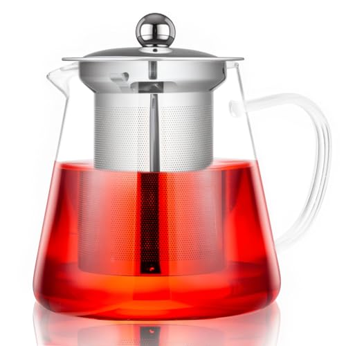 40Oz Glass Teapot with Infuser, Hickened Heat-Resistant Borosilicate Glass, Tea