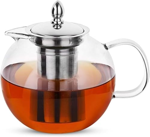 Clear Glass Teapot with Infuser, round Shape Infuser Tea Pot, Heat Resistant Bor