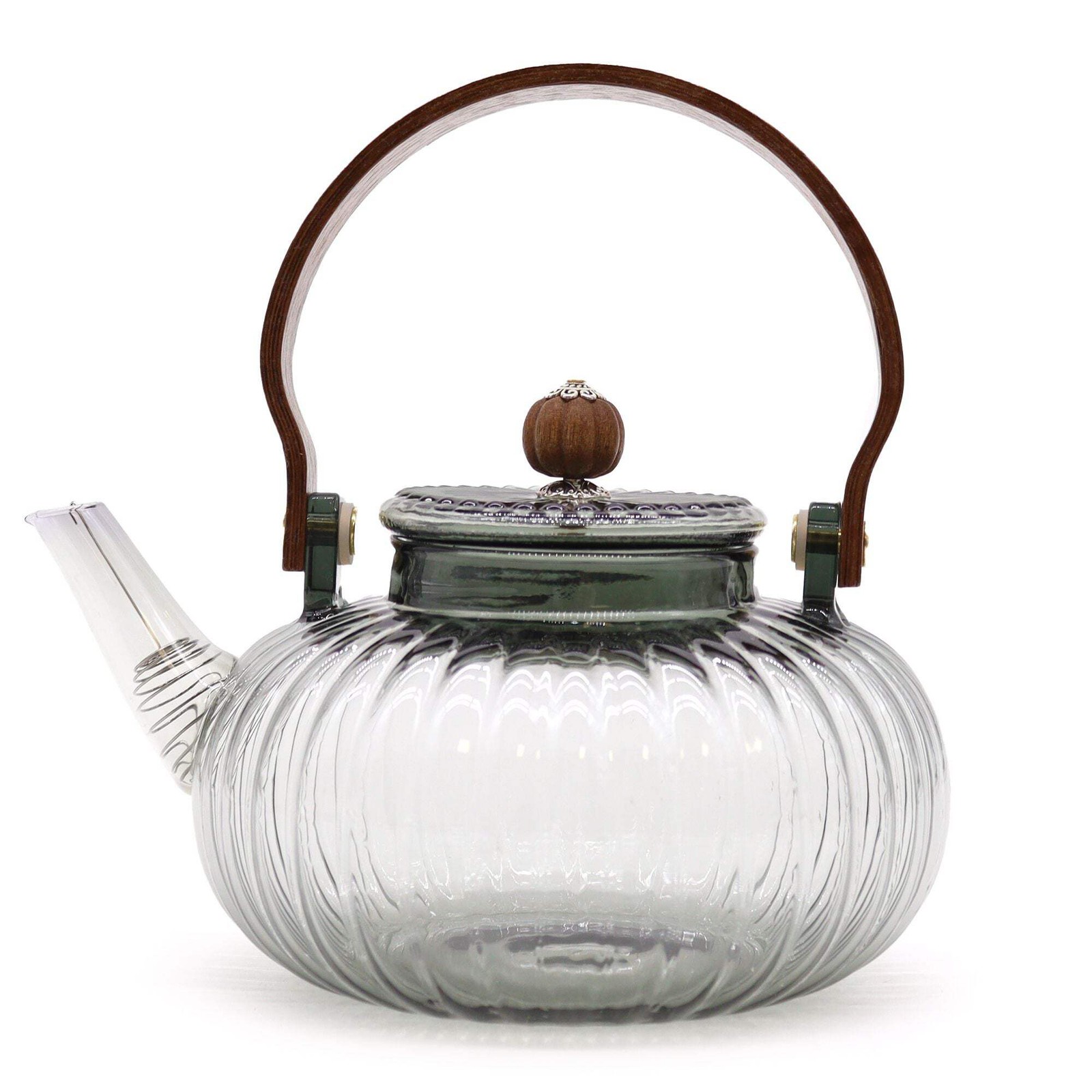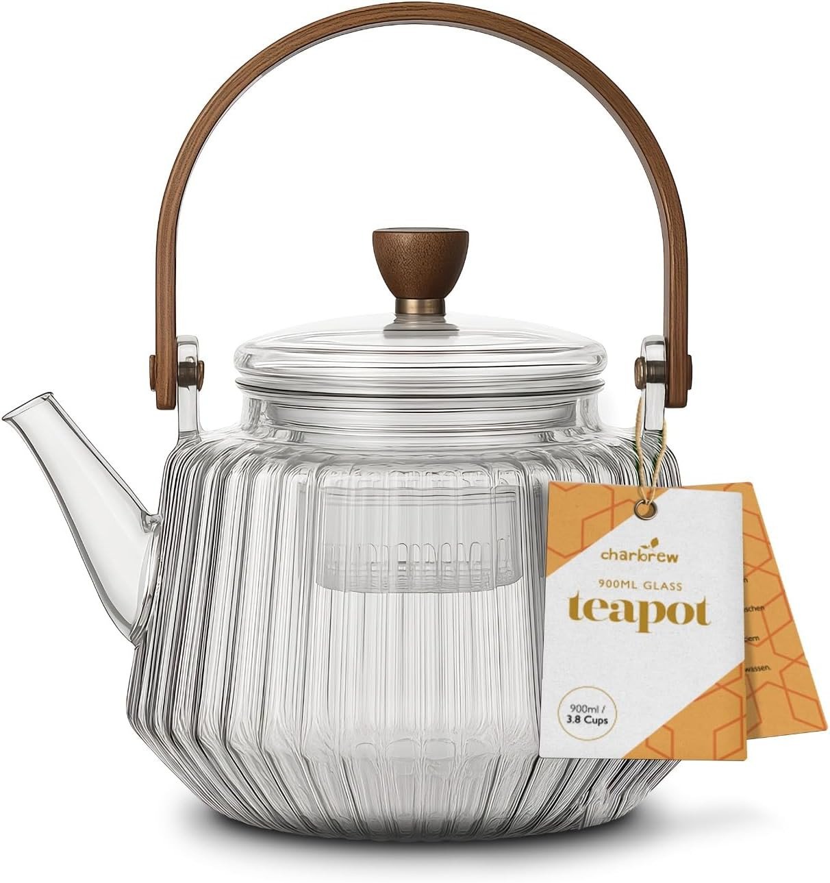 Charbrew 900Ml Clear Glass Teapot with Infuser - Striped Borosilicate Glass, Woo