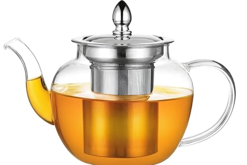 40Oz (1200Ml) Glass Teapot with Infuser – Stovetop Safe Heat-Resistant Borosilic