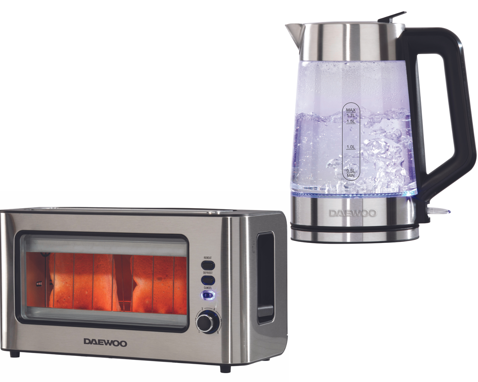 Daewoo Eco Cool Touch Glass Kettle & 2 Slice Glass Toaster Matching Set