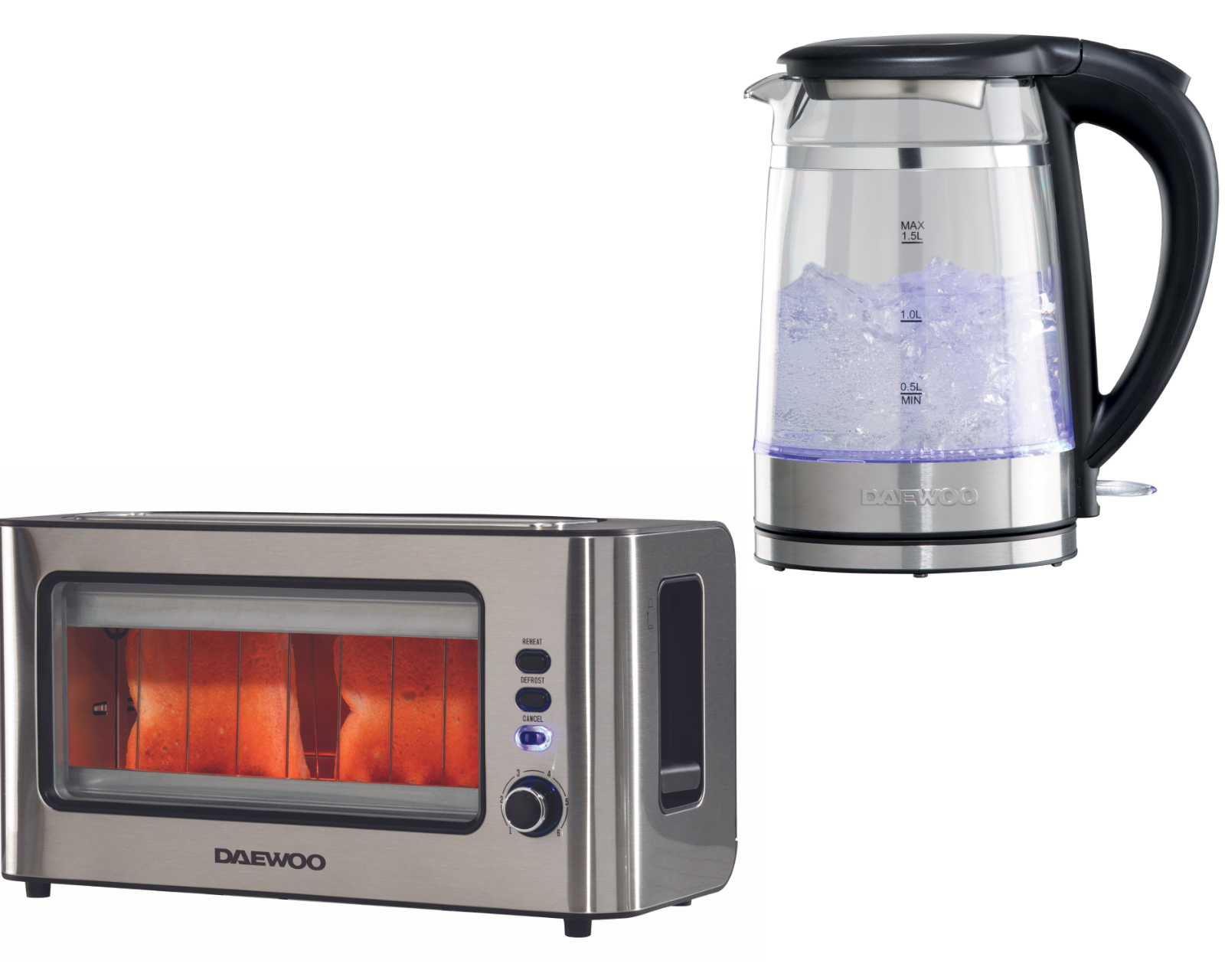 Daewoo SDA1060GE 2 Slice Transparent Glass Toaster in Silver