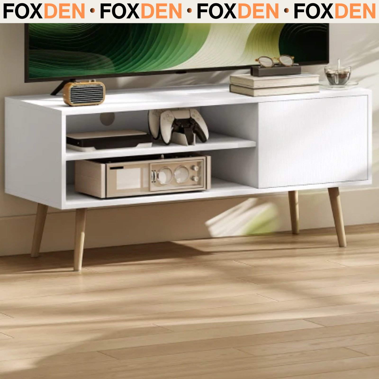 Modern TV Stand Cabinet for 55 Inch TVs White Media Unit 120cm Shelves & Storage