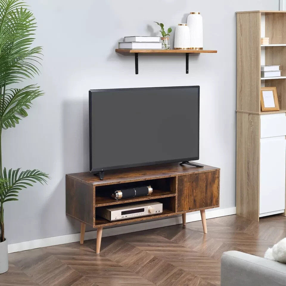 Industrial TV Stand for 55 Inch TVs Door Open Shelf Retro Wooden TV Unit Brown
