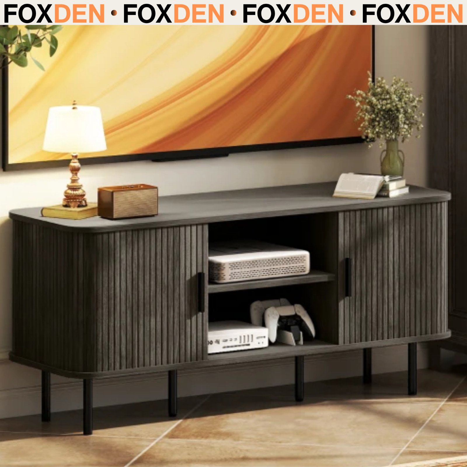Mid Century TV Stand Entertainment Unit with 2 Doors Shelves Cable Holes 55 Inch