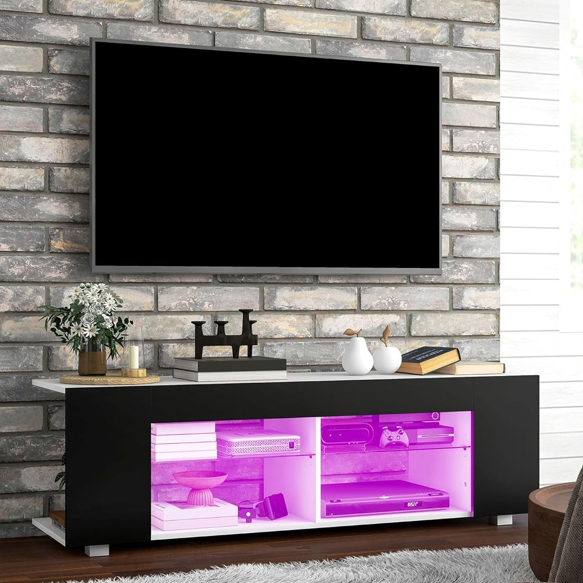 Homvdxl LED TV Stand for TVs up to 55 Inch, Entertainment Center Console with Storage, LED Lights, Glass Shelves, Living Room & Bedroom - Old Style