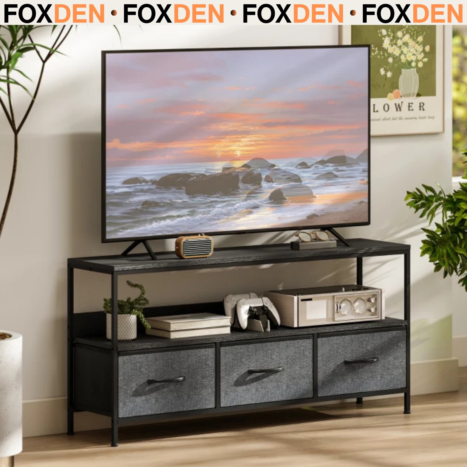 Industrial TV Unit Cabinet Stand for 55 Inch TVs 3 Foldable Drawers Shelf 120cm