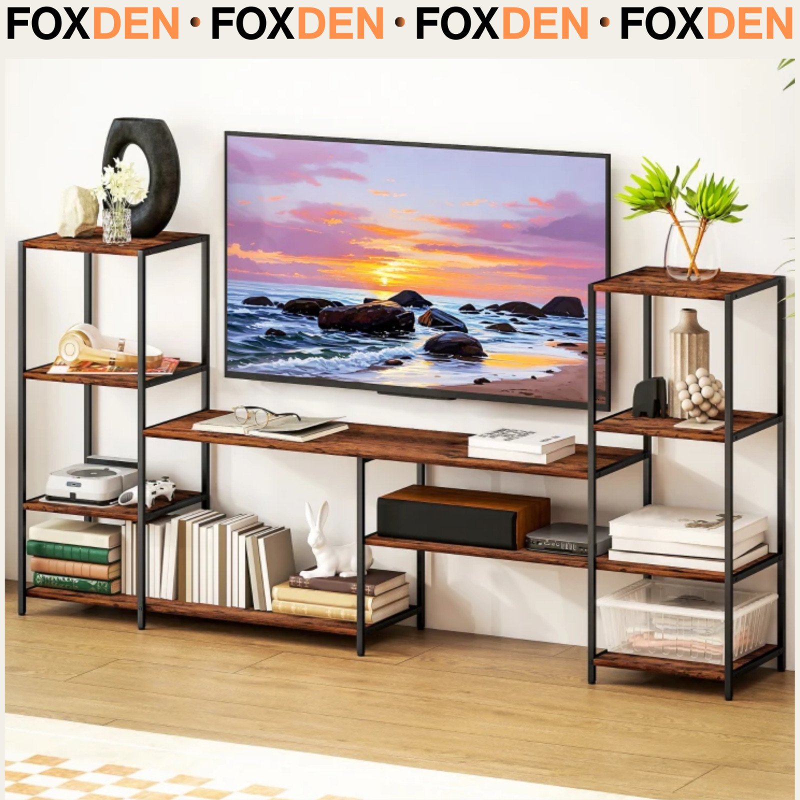 Industrial TV Unit Stand for 55 Inch TVs Black Metal Frame 192cm Storage Shelves