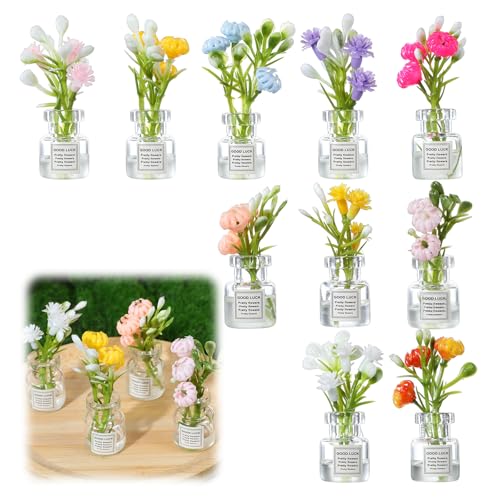 10PCS Miniature Dollhouse Plant Flowers, 1:12 Glow in The Dark Glass Vase Flowers, Mini Faux Flower Model, Miniature Flower in Vase Set for Tiny Houses, Fairy Gardens and Micro Landscapes