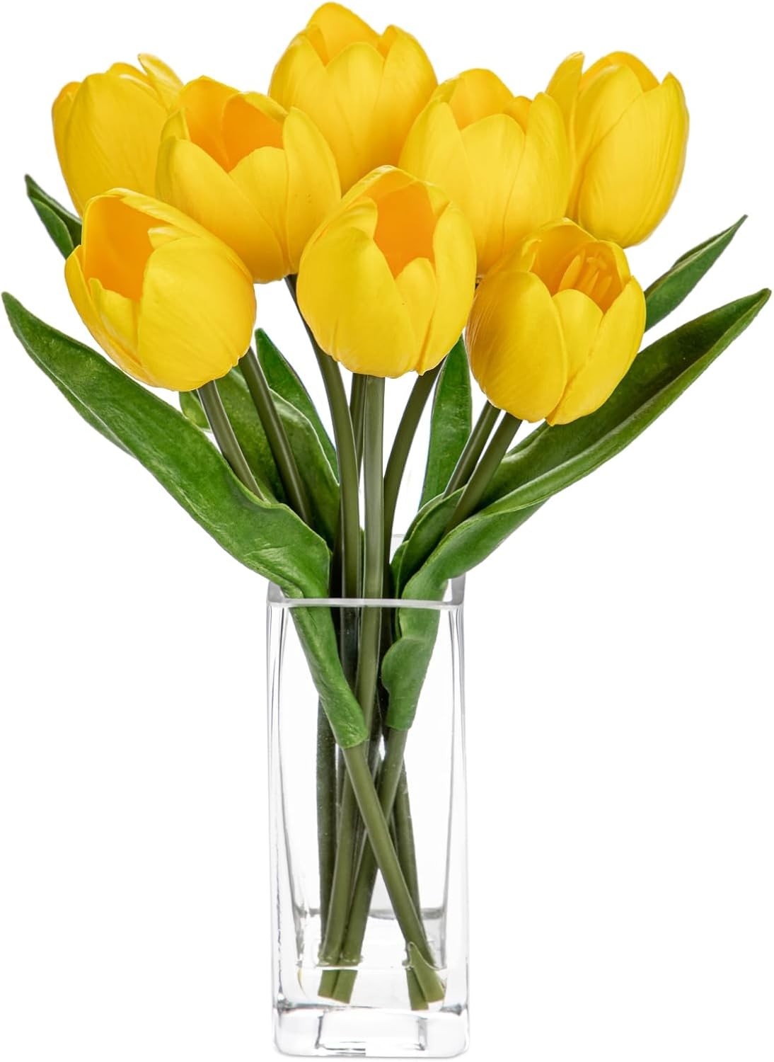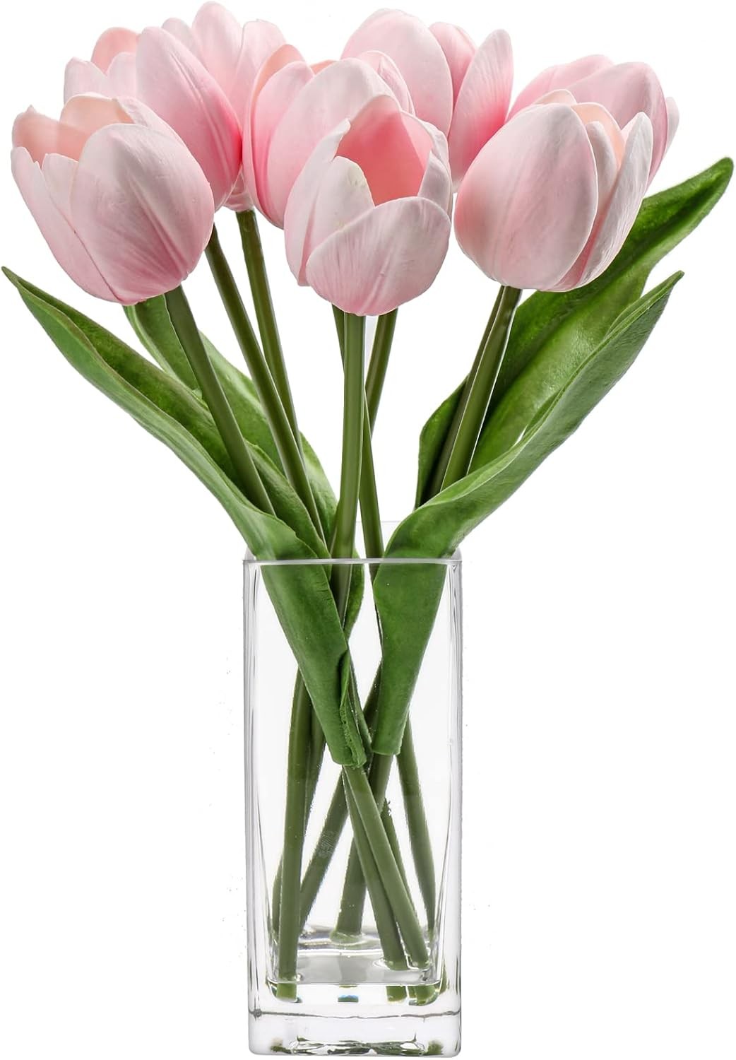 Hollyone 8PCS Artificial Tulips with Glass Vase Realistic Fake Flowers, Real To