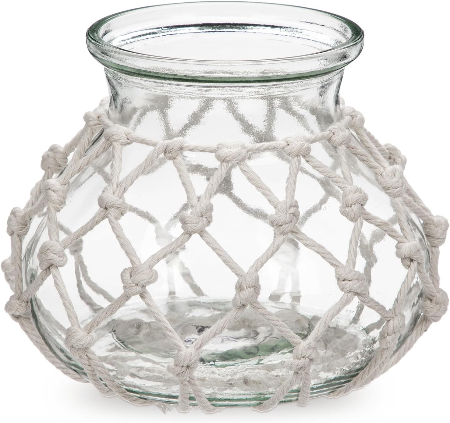 Oairse Glass Vase for Flowers Clear Flower Vase with Cotton Rope Cover Woven Mo