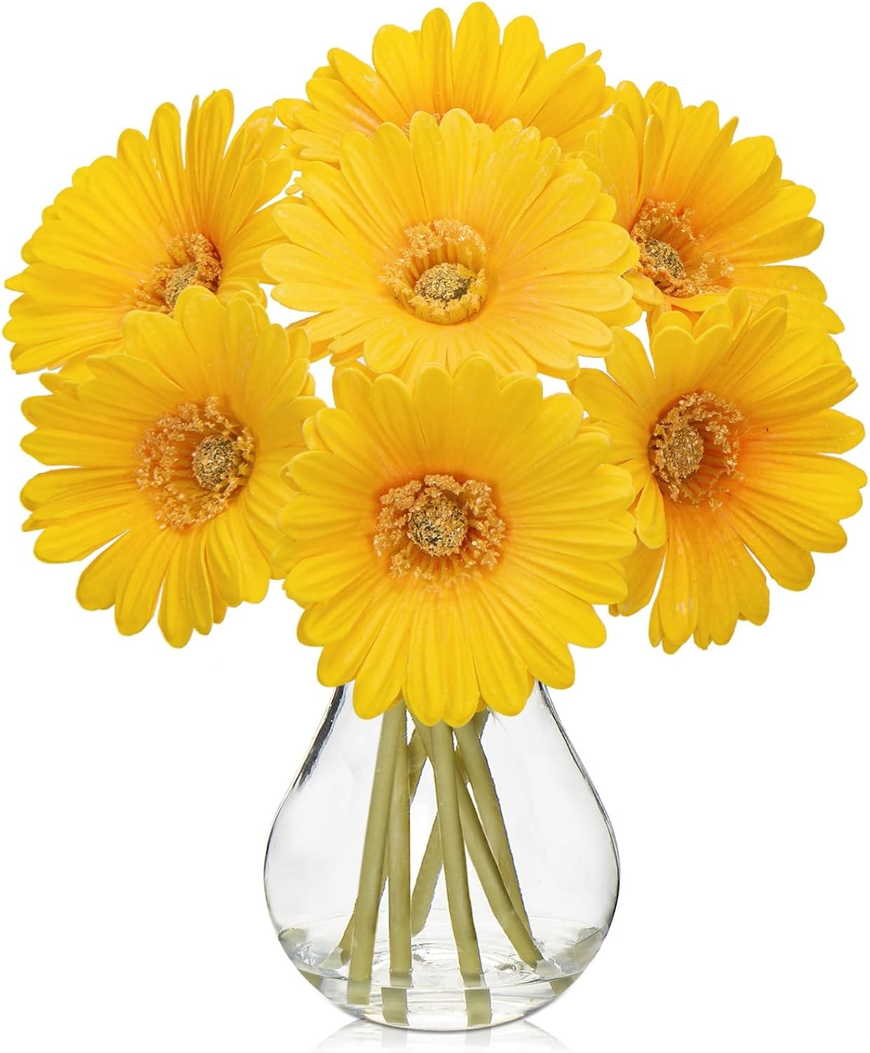 7 pcs Artificial African Daisies with Glass Vase, Small Fake Flowers in Vase wi