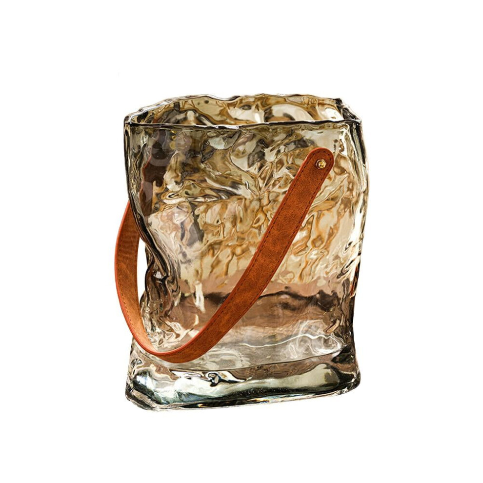 Handbag glass vase for Flowers, Clear Vases for Centerpieces, Bag Vase with Leather Handle for Home Wedding Decor, Decorative Fish Bowl