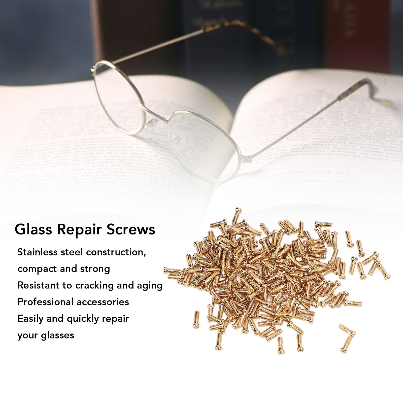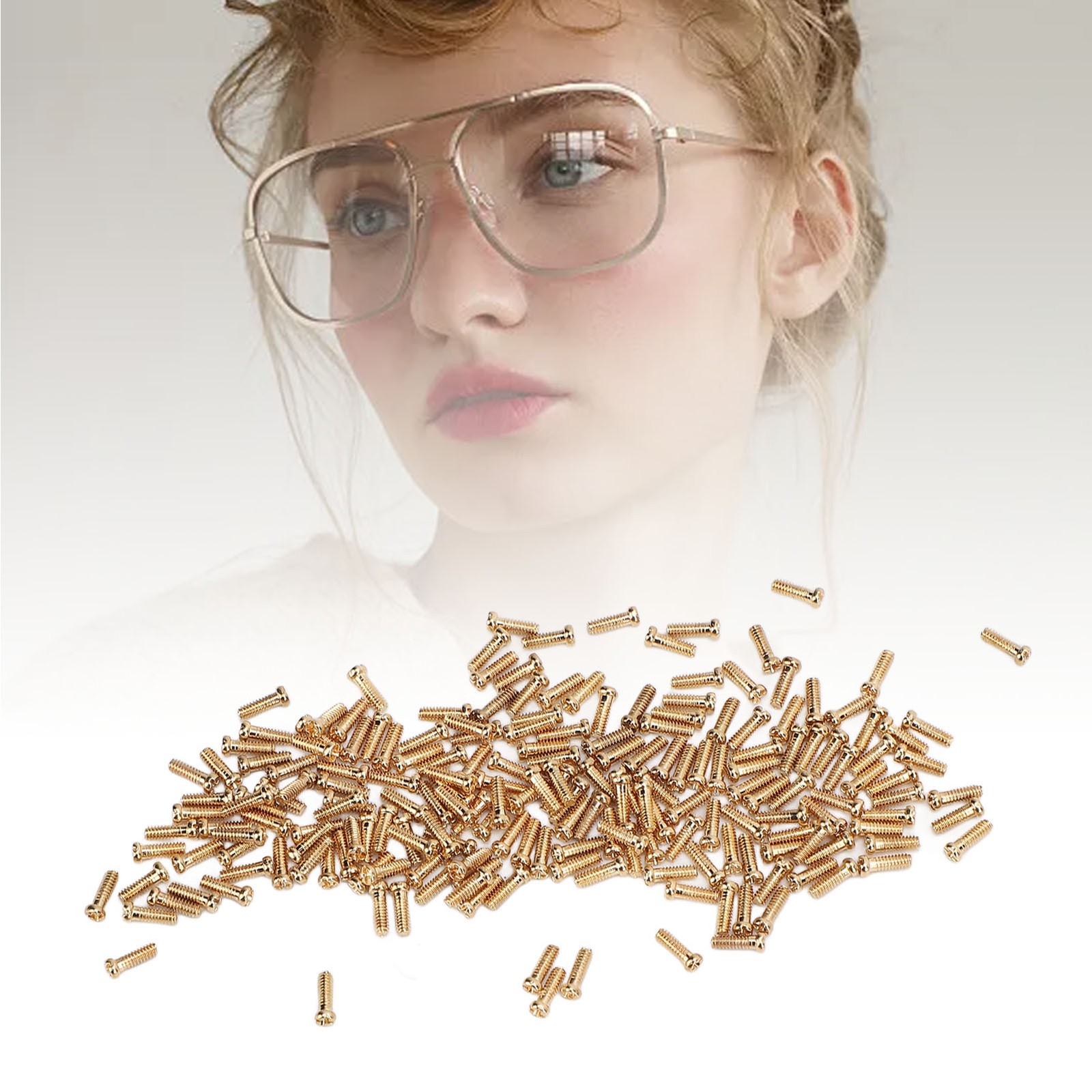 200Pcs 2.0x1.4mm Glasses Repair Screws Gold Plated Universal Stainless Steel Sma