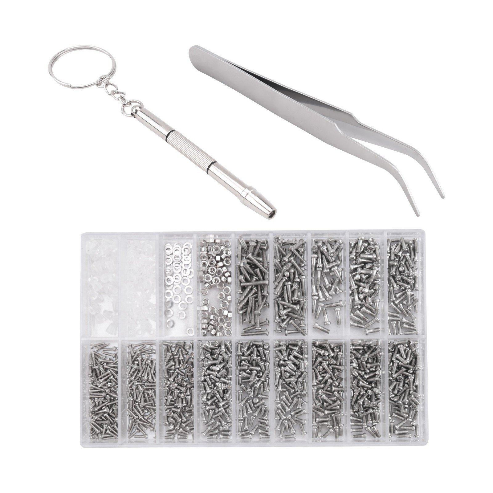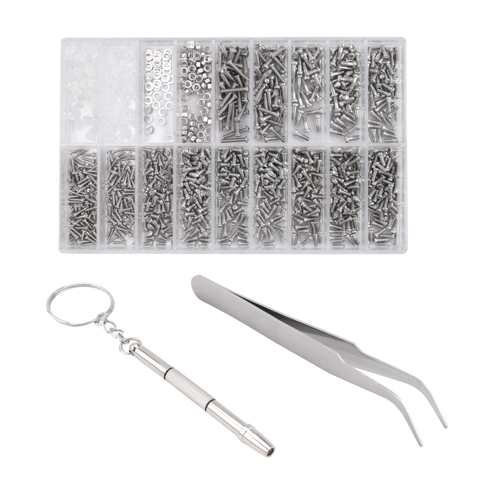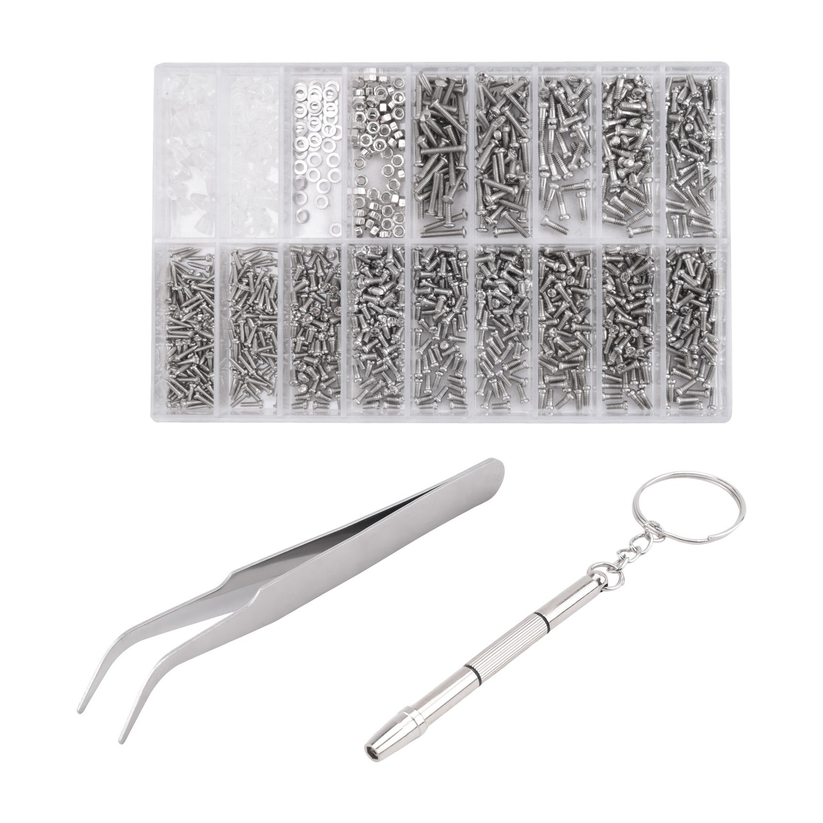 1000 Pcs Glasses Screws Assortment + 1 Pc Screwdriver + 1 Pc Tweezers,5031