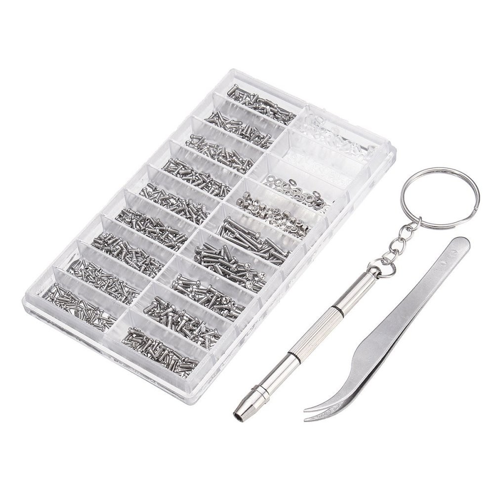 1000 Pcs Glasses Screws Assortment + 1 Pc Screwdriver + 1 Pc Tweezers,9024