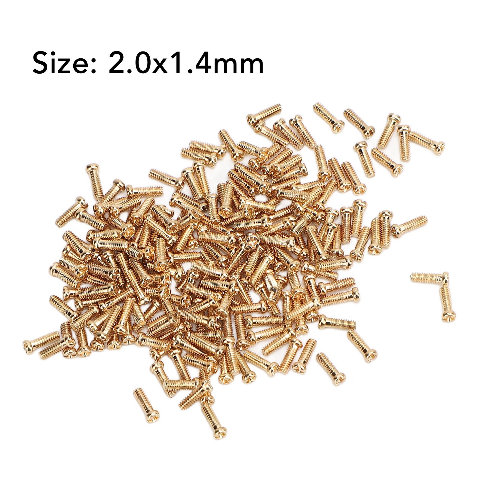 200Pcs 2.0x1.4mm Glasses Repair Screws Gold Plated Flat Head Eyeglasses Screws